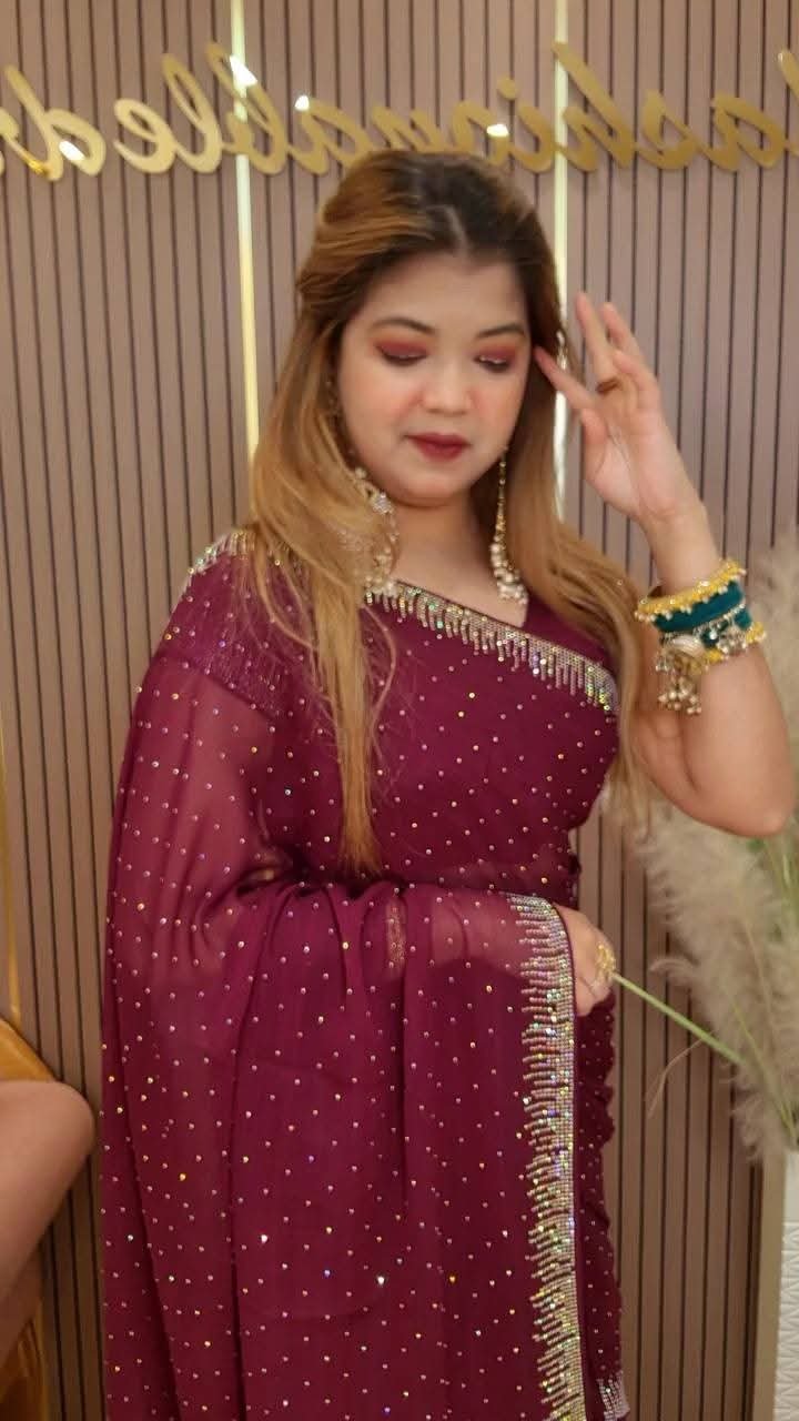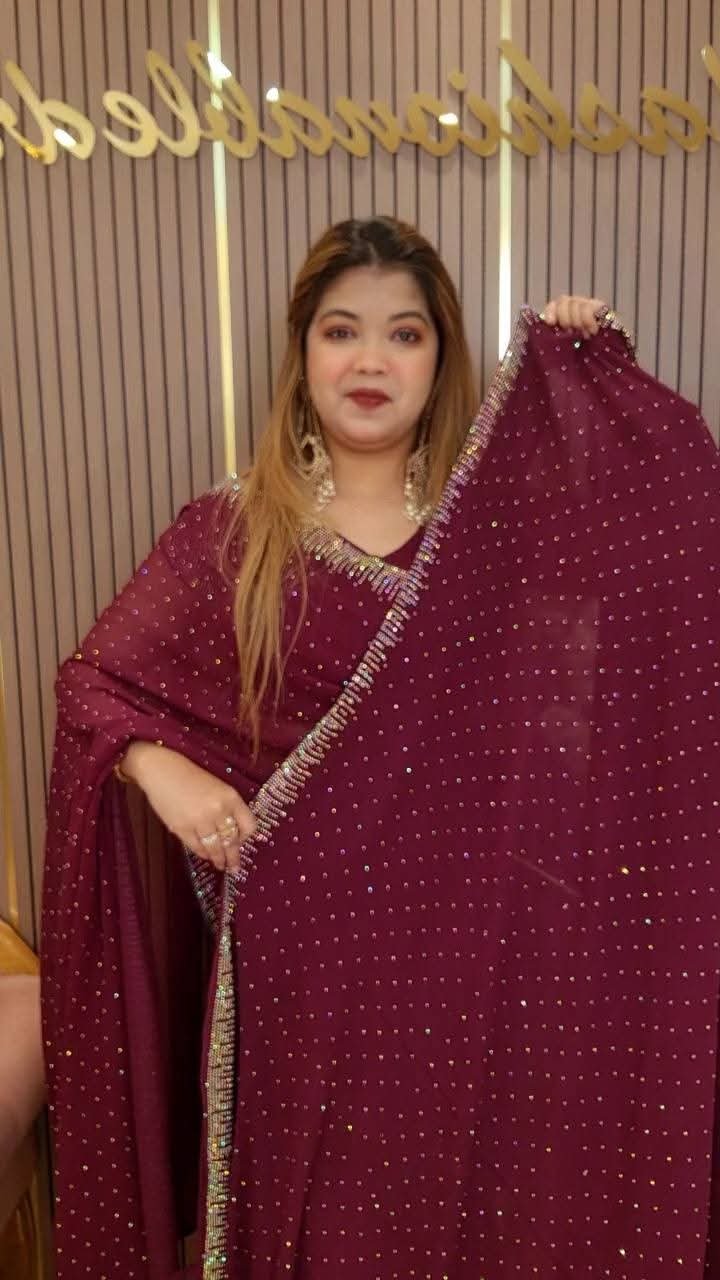 উচ্চমানের ইন্ডিয়ান জর্জেট ফেব্রিক দিয়ে তৈরি এই White Gold শাড়িটি হালকা, আরামদায়ক এবং স্টাইলিশ। পুরো শাড়ি জুড়ে সূক্ষ্ম সাদা স্টোন ওয়ার্ক যা আপনাকে দেবে এক অনন্য গ্ল্যামার। পার্টি, বিয়ে বা বিশেষ অনুষ্ঠানের জন্য একদম পারফেক্ট।