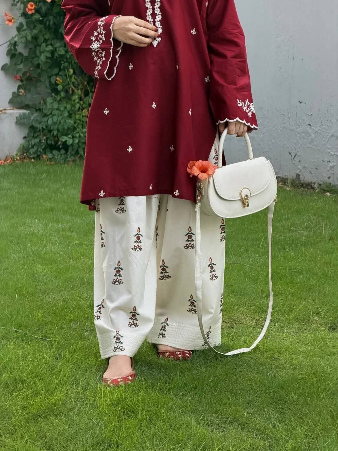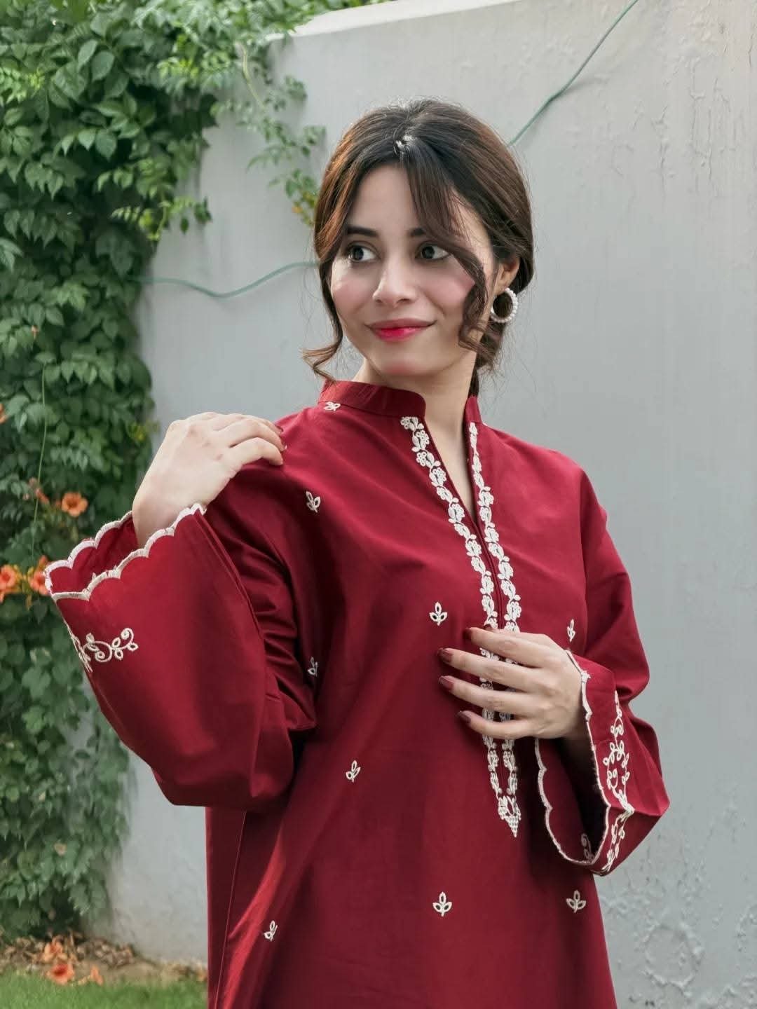 মেরুন কটন এই এমব্রয়ডারি কুর্তি আপনার লুকে দেবে রাজকীয় আভা 💫